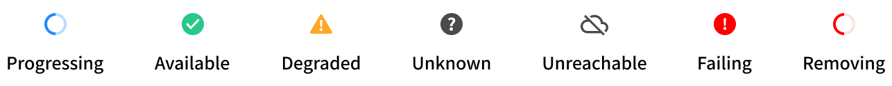 - Degraded - One of the cluster components is unhealthy. Some features may not be available.